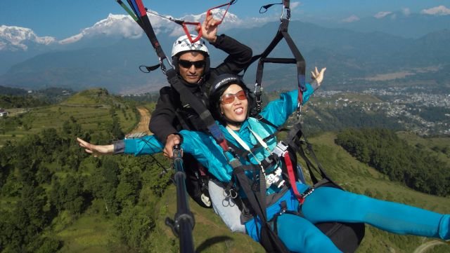 1. Short fly: The client is taken 100 – 150 mts up the slope and takes a flight along with the pilot in the two seater         paraglider. The flight lasts for approximately 60 – 90 seconds
